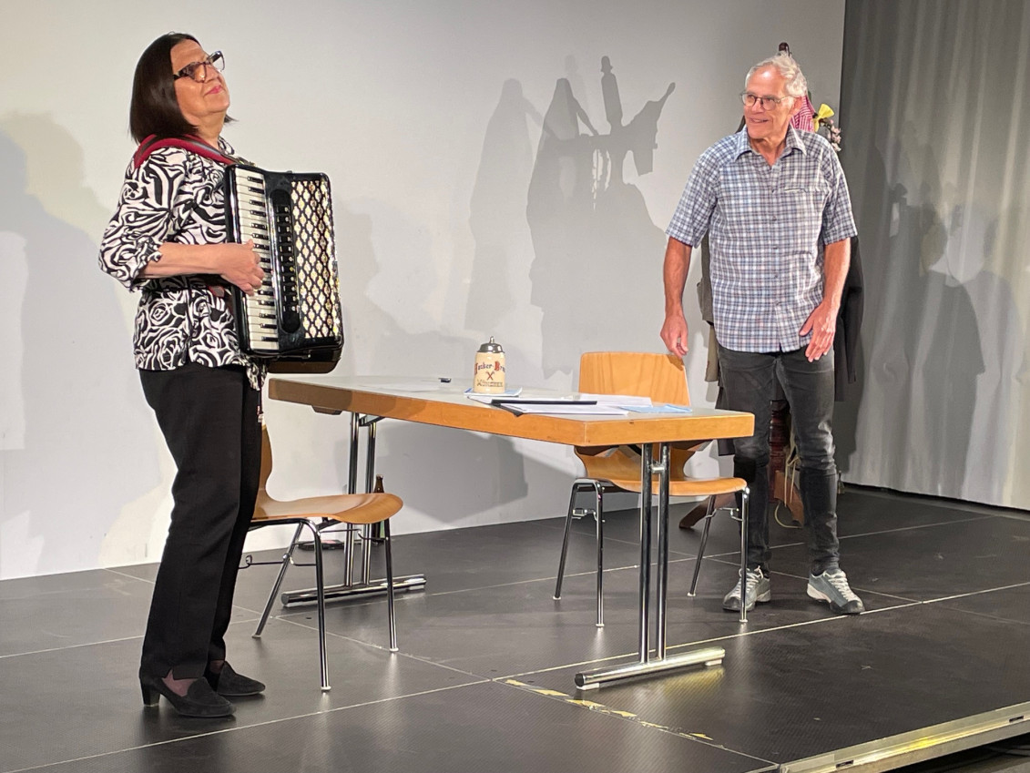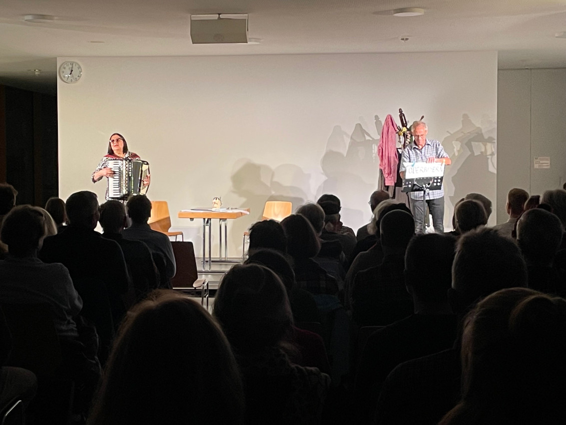 Das Kabarett-Due Klaus Weber & Daniela Huber, er Psychologieprofessor an der Hochschule München, sie pensionierte Musikerin der bayerischen Staatsoper, hat für einen unterhaltsamen und gleichzeitig nachdenklichen Abend gesorgt. Anhand von Briefen wird kabarettistisch aufgezeigt, dass das "Braune" in Köpfen und Herzen immer noch existiert.